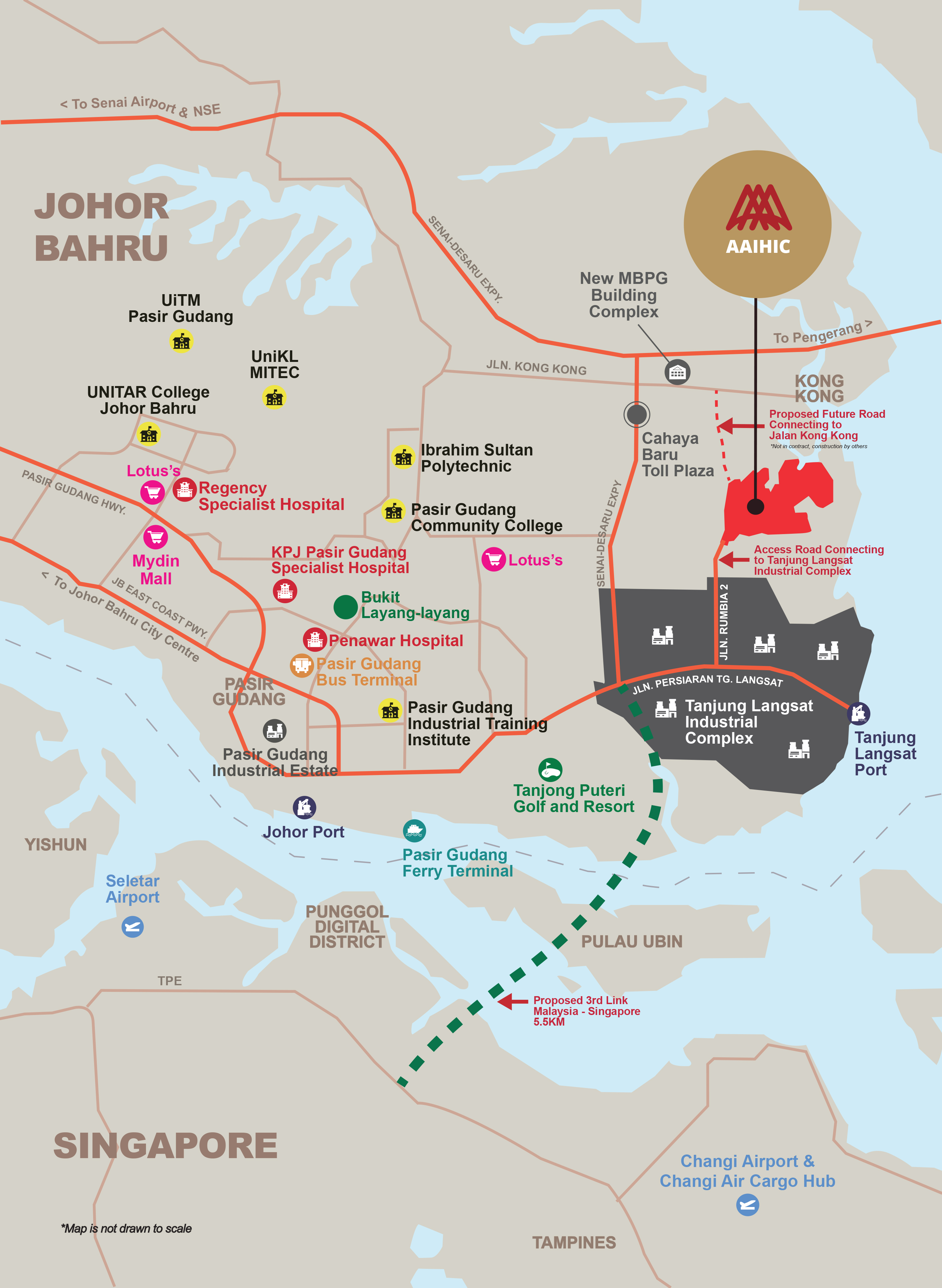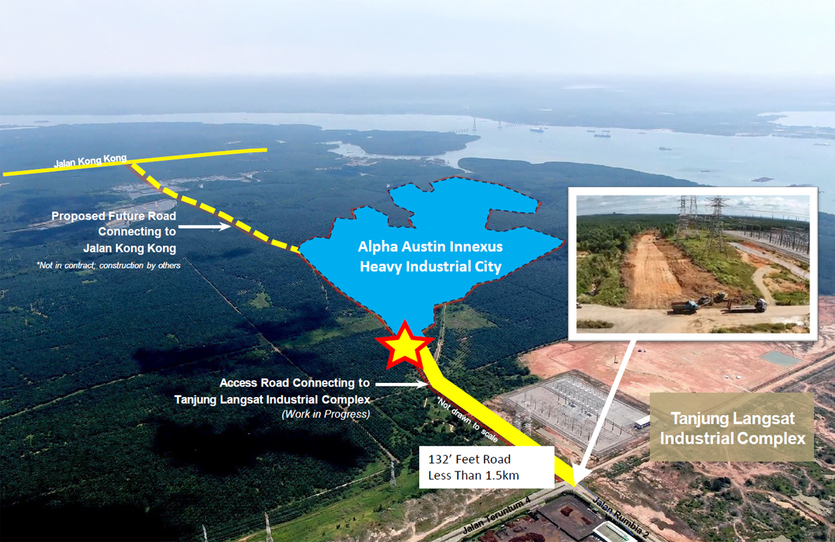 Alpha Austin Innexus Heavy Industrial City (AAIHIC) spans across 732 acres of prime land in Tanjung Langsat, Johor Bahru, Johor, Malaysia. It is located within the Flagship D (Tanjung Langsat-Kong Kong) of Johor-Singapore Special Economic Zone (JS-SEZ).